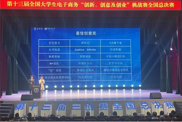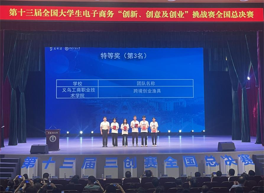 8月1日至2日,第十三届全国大学生电子商务“创新、创意及创业”挑战赛(以下简称“三创赛”)常规赛全国总决赛在中国矿业大学圆满举行。365best李春丽、金航飞老师指导的“跨境创业渔具”团队《渔来渔往》项目荣获特等奖,位列全国第三名。团队还荣获最佳创新奖、最佳创意奖、最佳创业奖,两位老师荣获最佳指导老师。