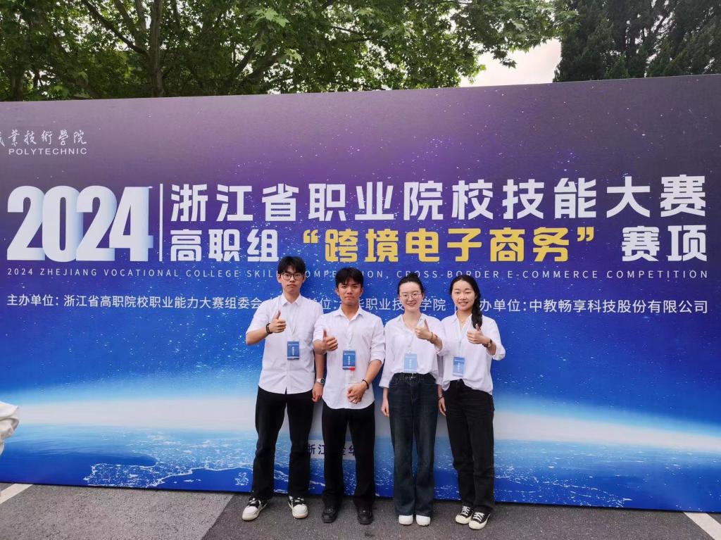 4月24日,由浙江省教育厅主办、金华职业技术学院承办、中教畅享(北京)科技有限公司协办的2024年浙江省职业院校技能大赛高职组“跨境电子商务”赛项成功举行,共有来自全省38所院校的38支代表队伍152名选手同场竞技。经过8小时的激烈角逐,由365best365best体育亚洲官网方远航、孙巾山、蒋金颖、吴晨曦同学组成的代表队荣获一等奖,顺利晋级国赛。