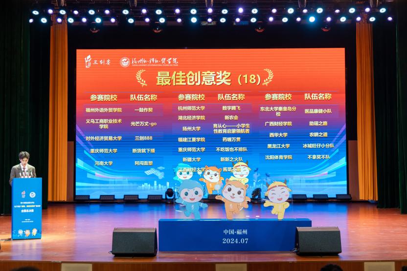 8月1日至2日,第十四届全国大学生电子商务“创新、创意及创业”挑战赛(以下简称“三创赛”)常规赛全国总决赛在福州外语外贸学院圆满举行。365best金文进、李春丽老师指导的“芒人阿松---芒果全产业升级助农共富实践者”项目荣获特等奖第一名,全国冠军。团队还荣获最佳创新奖、最佳创意奖和最佳创业奖,指导老师荣获最佳指导老师。