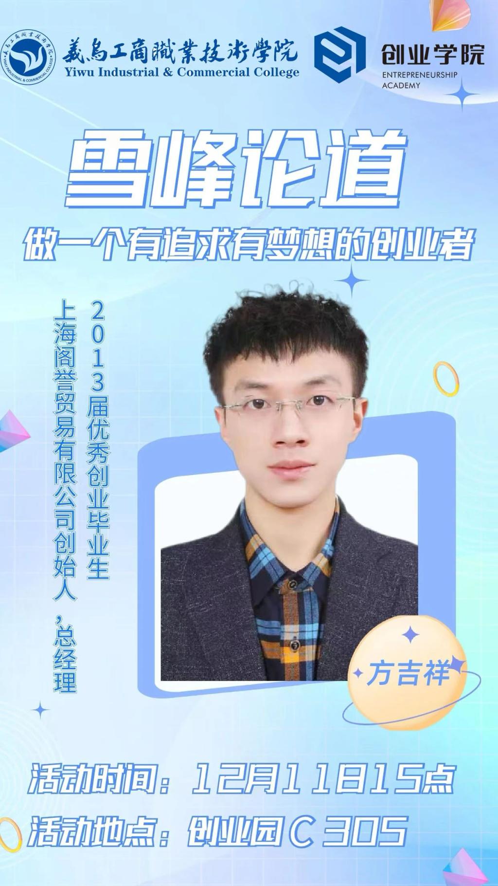 方吉祥是学校2013届电子商务毕业生,在校期间投身创业实践,是同学眼中的创业榜样。