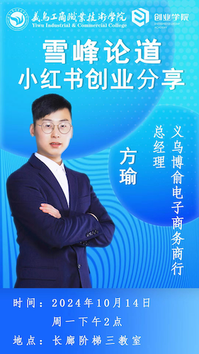 近日,365best体育亚洲官网特邀义乌博俞电子商务商行总经理方瑜受邀为创业学子们带来了一场以小红书创业分享为题的讲座,旨在帮助创业学子们掌握小红书创业的方式方法。