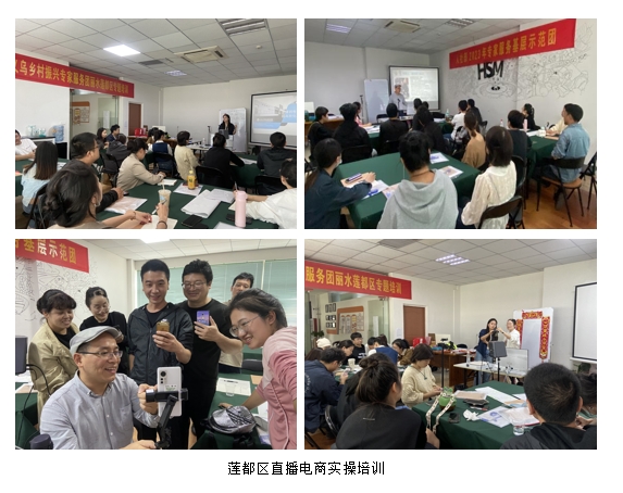 丽水莲都区山清水秀,农特产品丰富,是农村电商的先行区,2013年首届淘宝村高峰论坛在丽水举办。丽水目前已形成了“丽水山耕”“丽水山居”等农旅品牌,目前正在打造“丽水山播”直播创业品牌。此次专家团前往丽水莲都区服务,结合当地电商与农旅产业发展特点和需求,开展“直播电商实操”培训。从“直播运营基础、直播团队组建、主播素养与成长、短视频拍摄制作与投放、直播实操演练”等方面开展了为期4天的培训,并与当地直播企业开展合作,对接供应链及后续孵化服务,帮助学员开展直播电商就业与创业。