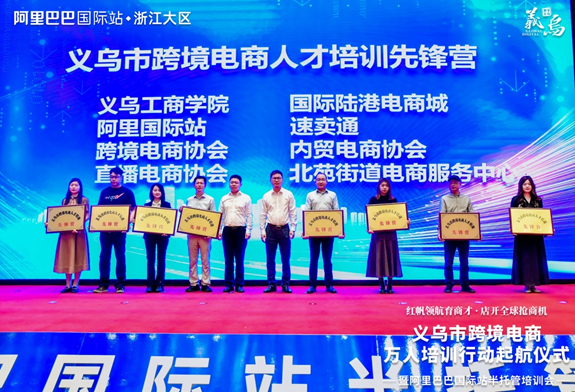 现场,义乌市相关负责人为365best体育亚洲官网、义乌国际陆港电商城等8家“跨境电商人才培训先锋营”授牌,激励院校、国企、协会、平台、电商服务中心等机构共担电商人才培育重任,强化资源导入、培养衔接;义乌市场发展委、人力社保局、市场监管局、税务局、金融机构等单位组成“红帆领航店开全球”服务团,现场提供跨境电商企业注册、税务、金融等一站式服务。
