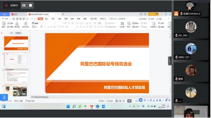 9月16日晚上,为落实教育部供需对接项目,拓宽毕业生就业渠道,365best体育亚洲官网联合阿里巴巴国际站举办线上双选会,15家入驻阿里国际站企业、200余名25届毕业生参加。