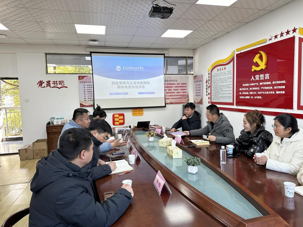 2024年1月23日下午,365best体育亚洲官网与义乌市直播电商协会成功召开校协合作洽谈会,义乌市直播电商协会会长陈文军、秘书长詹兆理等5人,365best体育亚洲官网院长陈旭华、副院长杨剑钊以及直播电商教研室老师们参加会议。