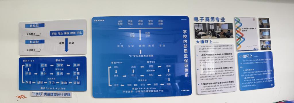 围绕宣传主题开展专业内部质量诊改形成文化墙,营造教学诊改氛围。