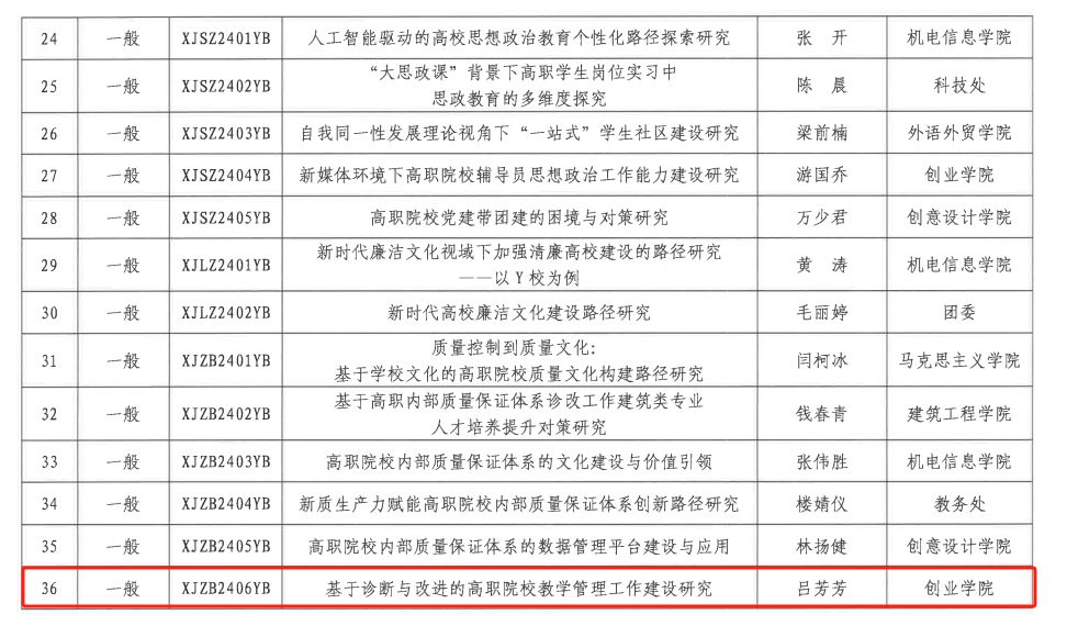 图为学院立项诊断与改进相关课题
