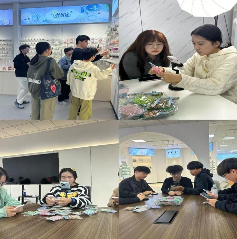 企业“请进来”,推动校、企异质性资源的互补。针对陈明饰品和云仓直播基地的产品,学生们根据对标账号的爆款产品开始DIY手链、手机链、发夹等相关产品,并利用企业的摄影棚进行产品图片和视频的拍摄。企业导师根据产品特色指导学生进行小红书和直播平台的文案创作并发布,并指导学生将DIY饰品进行现场直播。当天不少学生收到购买订单,企业一件代发,产生了不错的反响。同时,学生也了解行业动向和市场需求。