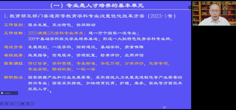 讲座中李志宏提出抓好教学新基建,创建高水平本专科教育需要从以下方面入手。首先,专业是人才培养的基本单元,需落实教育部专业设置优化改革方案,严格执行国家专业教学标准,持续建设职业教育专业教学资源库;其次,课程是人才培养的核心要素,需要开展职业教育一流核心课程建设,吸取一流本科课程建设的组织模式和经验;教材是人才培养的主要剧本,需要建立信息平台开展评估;同时,实践是教学质量的薄弱环节,必须强化教学实践,确保实习基地的数量和稳定。