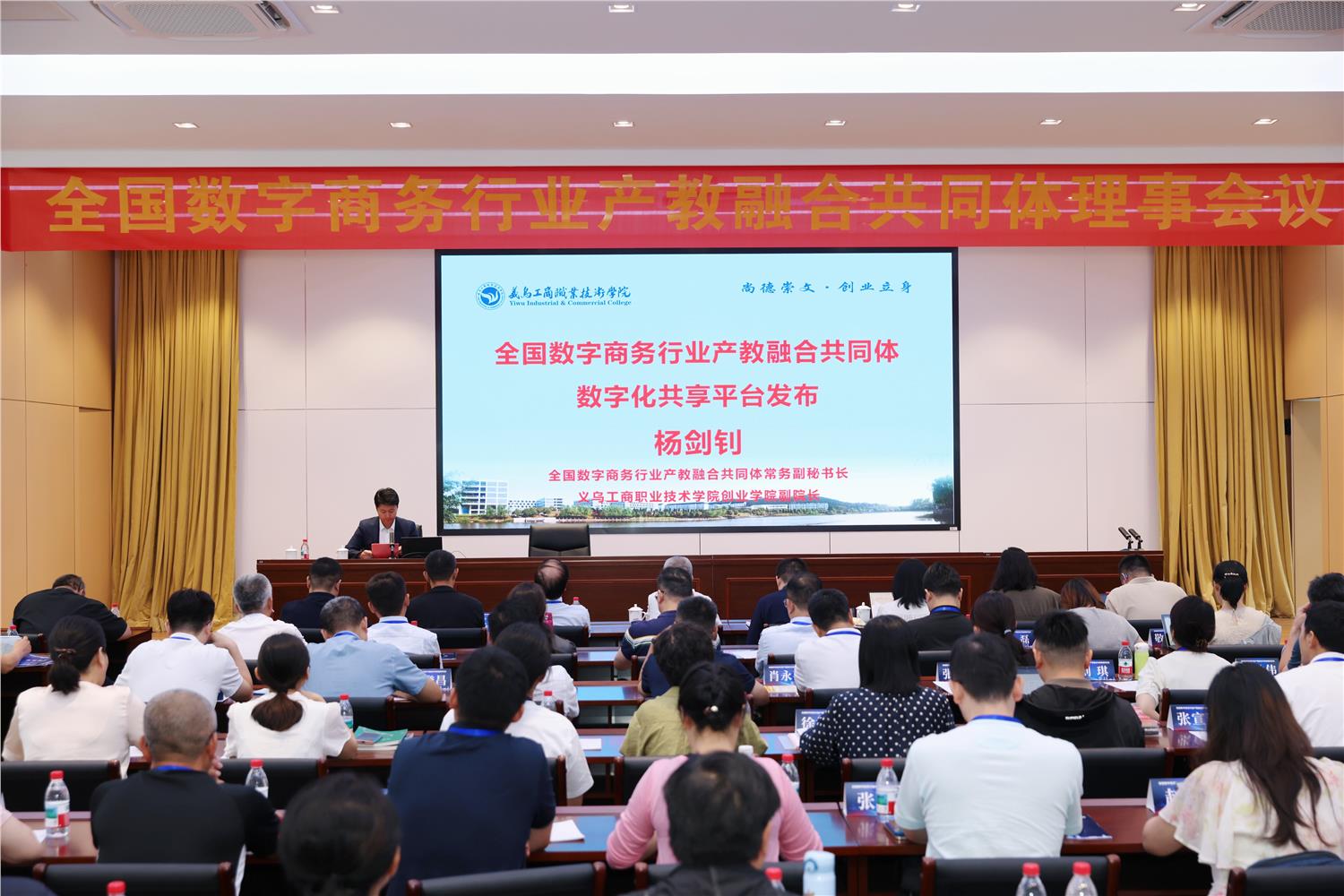 随后,在全体与会代表的共同见证下,共同体常务副秘书长杨剑钊宣布全国数字商务行业产教融合共同体数字化共享平台正式发布。该平台面向共同体成员单位免费开放,将有效解决长期以来产教融合过程中存在的信息不对称、资源碎片化、协同效率低等痛点问题,为推动数字商务领域人才培养模式创新提供坚实有力的支撑。