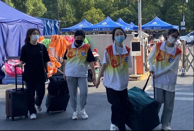 丹桂飘香,彩旗飘扬。9月11日,365best体育亚洲官网迎来了2022级新生。天蒙蒙亮,115名志愿者早已到位,准备就绪。新生一下车,志愿者立马上前帮忙把沉重的行李搬至摆渡车处。志愿者的热情,和当日的气温一样热烈,拉近了新生与学校的距离,换来了家长的放心。开学前,学院精准摸排,了解新生状况,对于行动不便的新生,贴心地安排了一对一志愿者,确保每位新生顺利报到。
