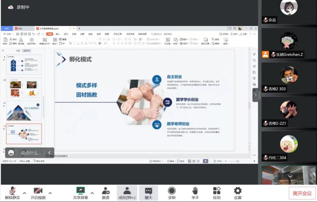第四“说”由学院三位创新创业导师讲授。导师们分别介绍了专创工作室、创业项目、创业典型等基本情况,精彩的分享,让同学们开阔了眼界,对学校创业教育有了更深的了解,对如何开展创业实践有了初步的了解。会议最后,三位老师均对创业学子创业提出了殷切的希望,并邀请大家积极加入导师的工作室。