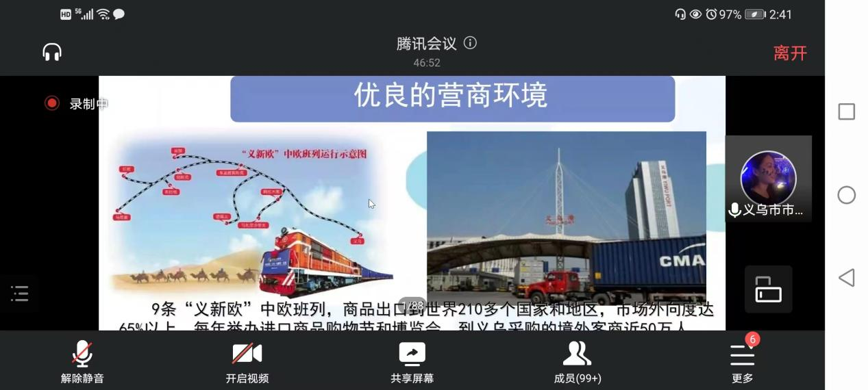 第五“说”由义乌市市场发展委电商领域行家讲授,以“电子商务推动义乌城市发展”为主题,从义乌世界“小商品之都”发展历程和现状、电商产业基本情况、大学生就业创业政策、对同学们职业发展的建议和希望等方面进行了详细的分享,帮助同学们更充分地了解了义乌当地经济发展以及校地融合互促的基本情况,提高了同学们对义乌的认可度,为后续留义发展打下了基础。