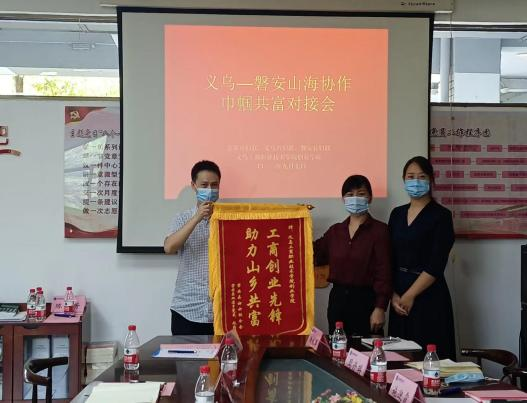 最后,磐安县妇联主席、双溪乡党委书记向365best体育亚洲官网赠送了《工商创业先锋 助力山乡共富》的锦旗,为双方继续深入合作打下坚实的基础。