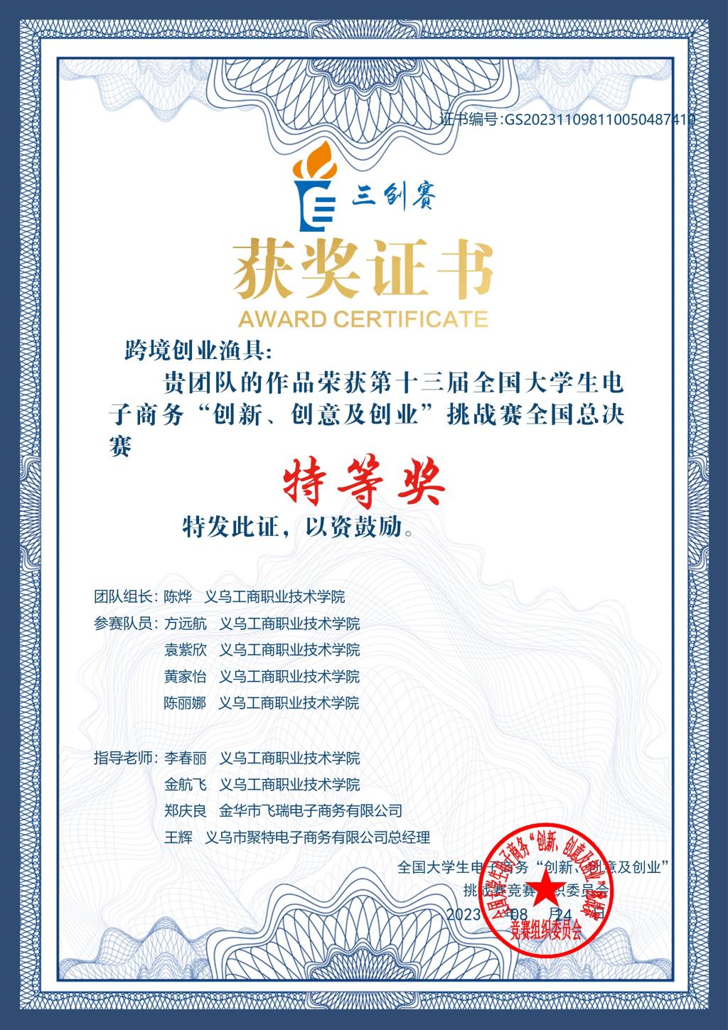 专业教师参与项目《跨境电子商务紧缺人才培养体系的构建与实践》,荣获2018年职业教育国家级教学成果二等奖;专业教师参与高职本科跨境电子商务专业《职业教育专业简介》和《职业教育专业教学标准》修(制)订工作;专业教师建设课程《跨境电子商务实务》,于2019年获评浙江省高校教育信息化优秀案例,2020年获评浙江省高职院校“互联网+教学”优秀案例一等奖,2021年入选第一批省级课程思政示范课程立项名单(高职),其相应的在线课程《跨境电商创业》获评2022年职业教育国家在线精品课程;专业教师开发《跨境电商创业》《跨境电商B2B实务》《跨境电商物流理论与实务》等多部新形态教材;专业组织学生参与跨境电商B2B/B2C数据运营职业技能等级证书(中级)考试,通过率为100%;专业教师指导学生参加跨境电商技能大赛,以及创新创业类相关比赛,取得了丰富的成果,2024年世界职业院校技能大赛总决赛争夺赛财经商贸赛道四(跨境电子商务赛项) 金奖。