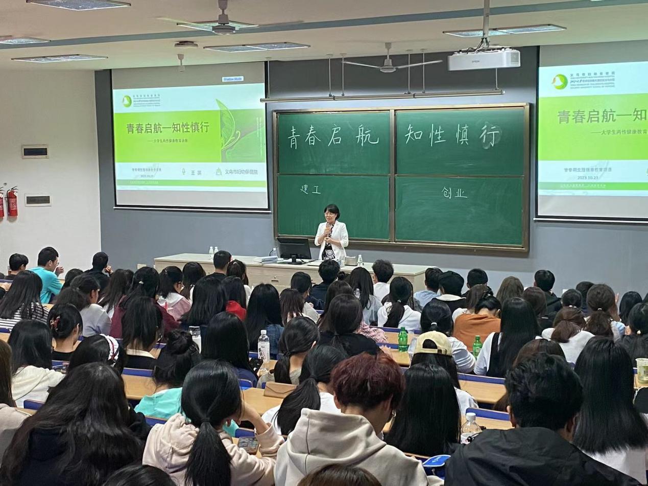 王英是义乌市妇幼保健院党委委员、副院长,妇产科主任医师,曾获“金华市技术能手”称号。她根据大一学生的身心特点,紧密围绕“知性慎行,健康生活”主题,就当代大学生的性观念、性健康和两性生殖卫生知识等三个主题展开讲座。具备多年的临床经验的王医生以临床案例引出,对不洁性行为、艾滋病、意外怀孕、流产等危害进行了科普,引导同学们尊重两性差异,正视性健康,树立洁身自好、积极向上的生活理念,夯实了同学们的两性健康基础知识。同学们认真听讲,积极参与互动环节,整体氛围轻松愉快。